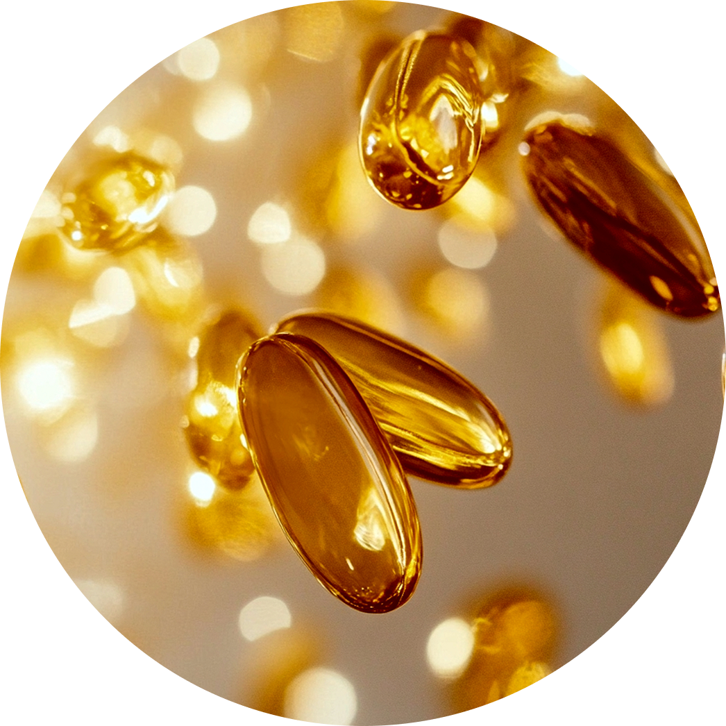 A vital antioxidant that preserves youth and resilience. Vitamin E protects against free radicals, soothes inflammation, and supports cell repair. It enhances smoothness, prevents UV damage, and keeps the skin hydrated and firm.