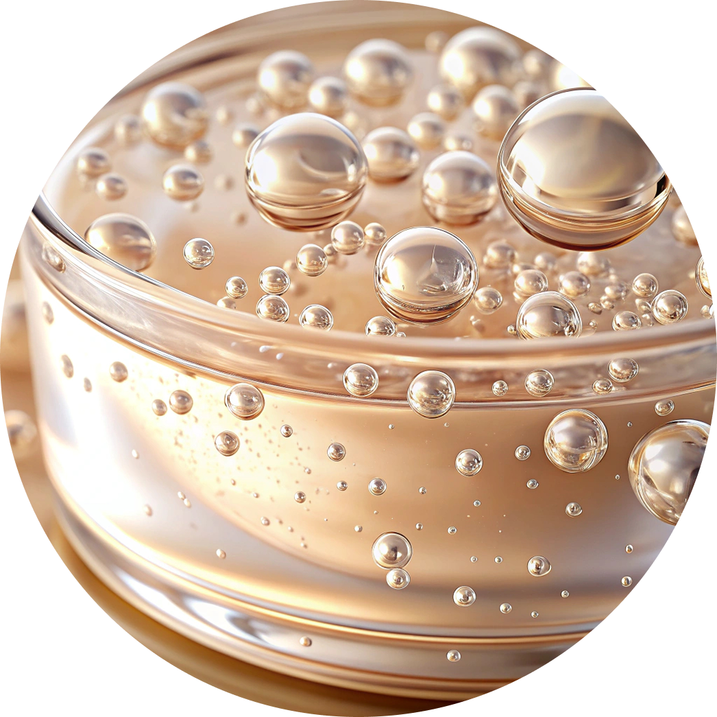 This biomimetic peptide mimics the body’s natural collagen synthesis mechanism. It stimulates production via TGF-β activation while inhibiting collagen-degrading enzymes. Clinically proven to smooth wrinkles, firm texture, and restore elasticity.